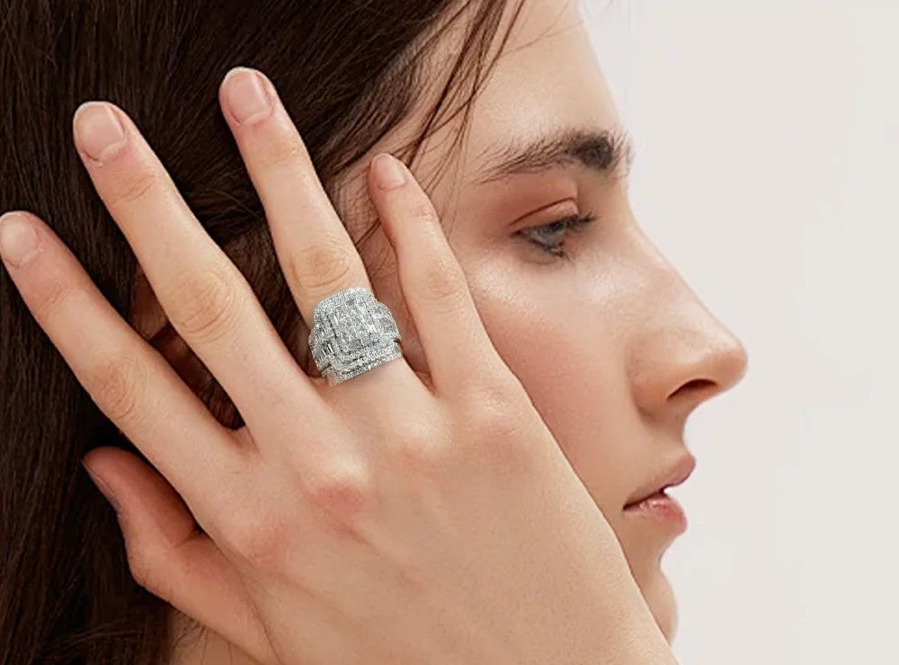 L'anello con brillanti Halo cattura la poesia della luce in movimento. Realizzato con strass luminosi incastonati in argento sterling S925, risplende delicatamente da ogni angolazione, in un equilibrio naturale tra eleganza e fascino moderno.